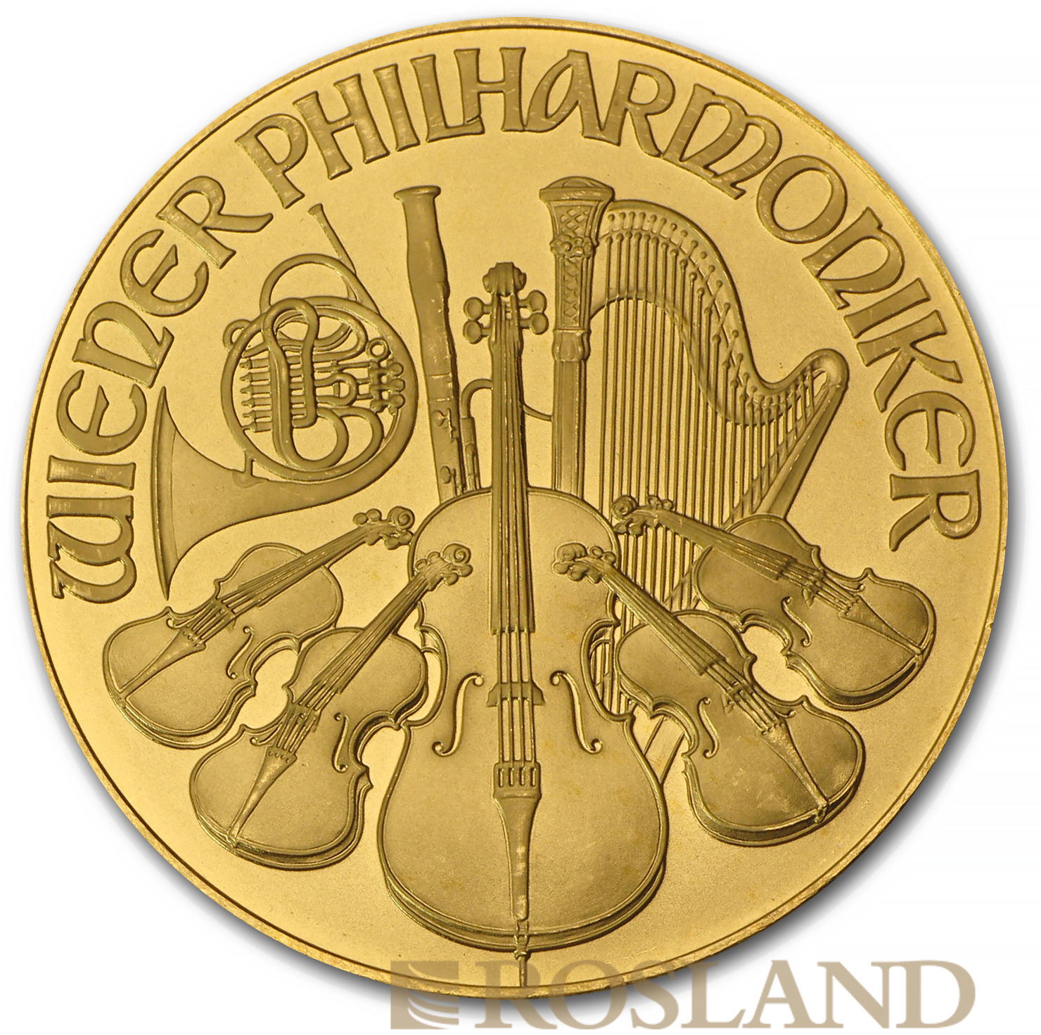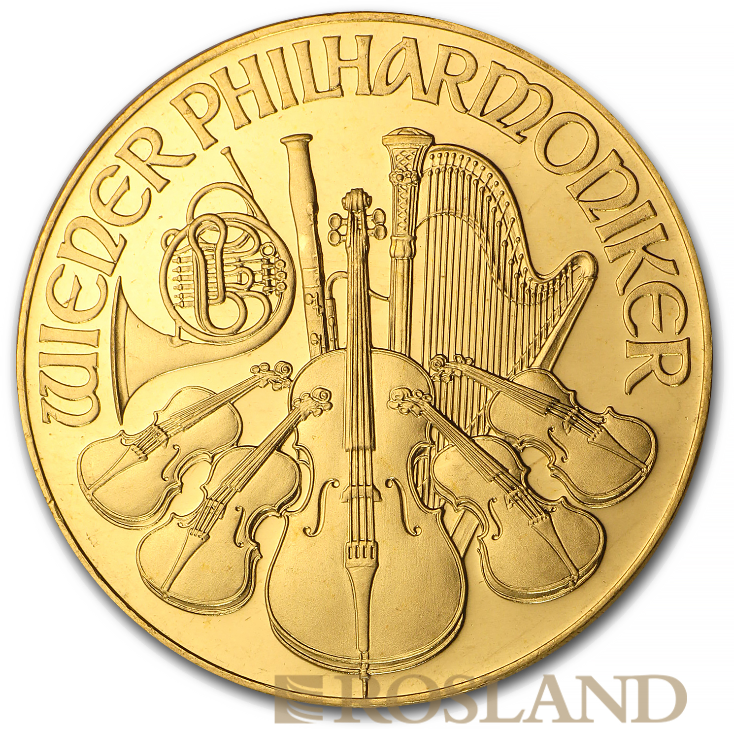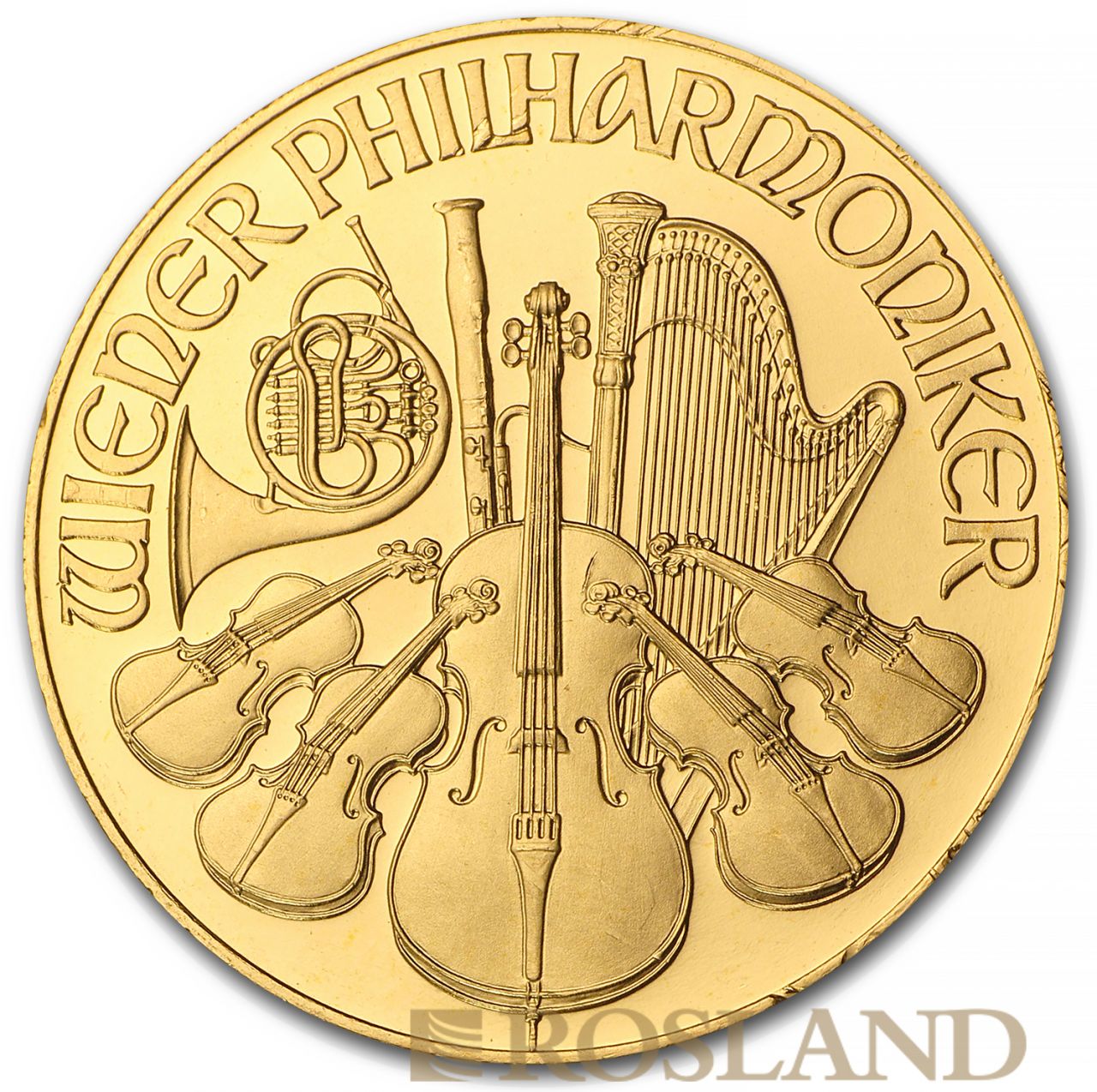 The Vienna Philharmonic (German: Wiener Philharmoniker), often shortened to Philharmonic, is a bullion coin of gold, silver, or platinum produced by the Austrian Mint (Münze Österreich).The coin is named for the Vienna Philharmonic orchestra, which inspired the design of both sides. It was introduced in 1989 as a one-troy ounce (ozt), gold coin with a face value of 2,000 Austrian schillings.