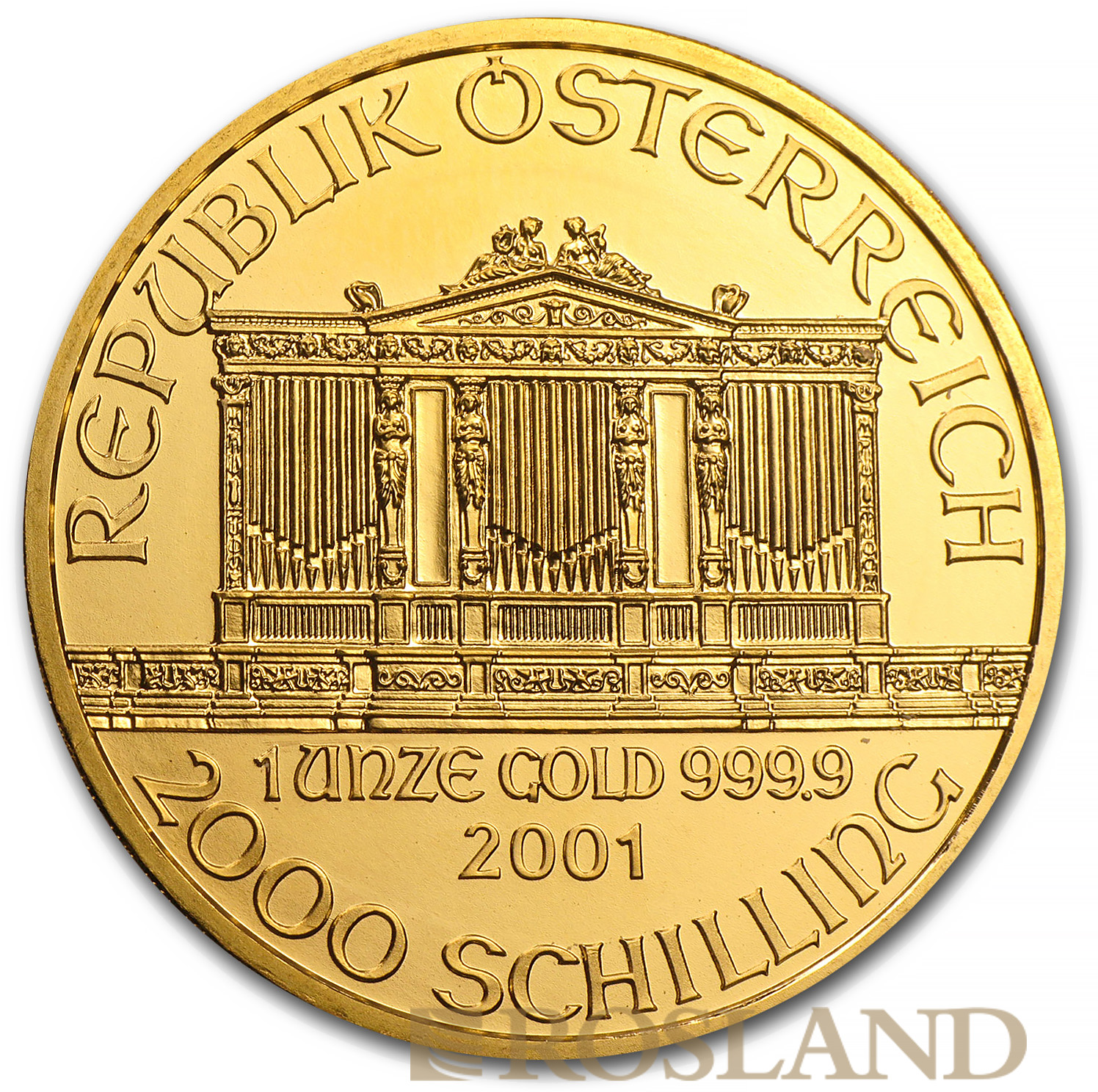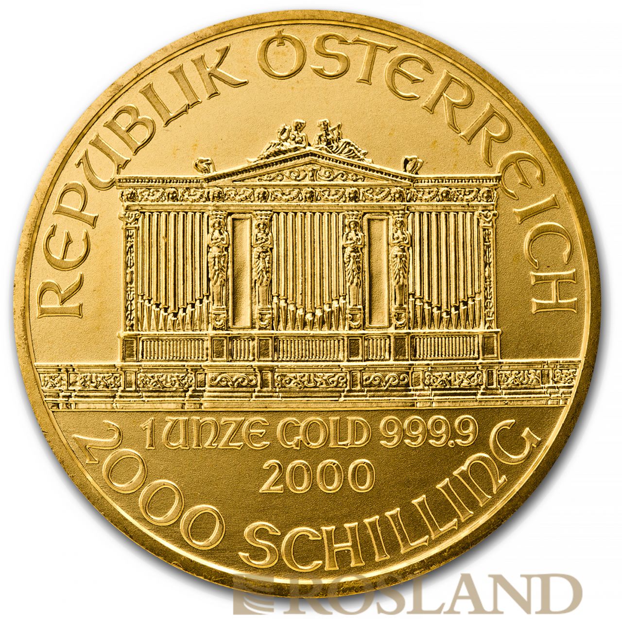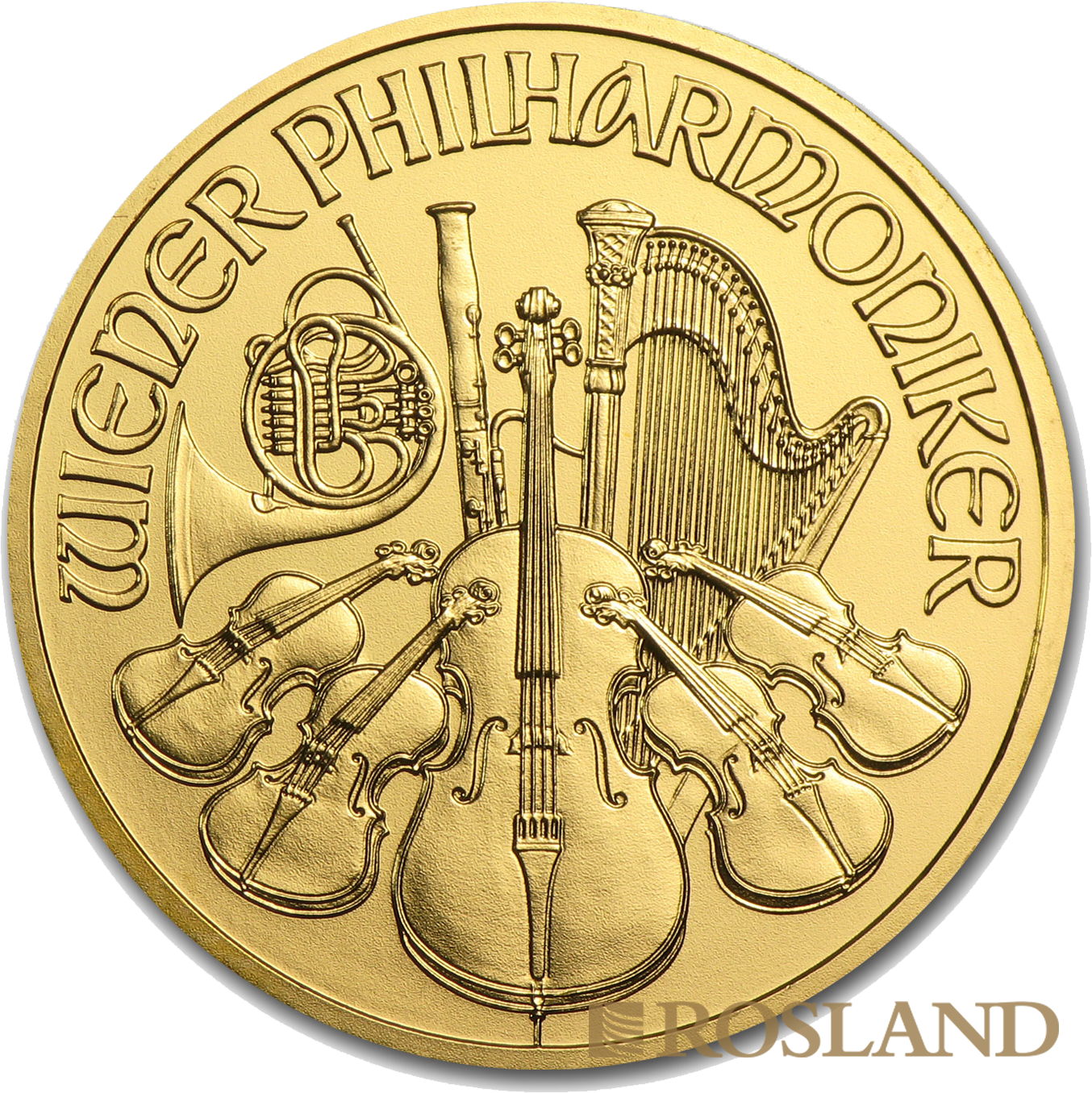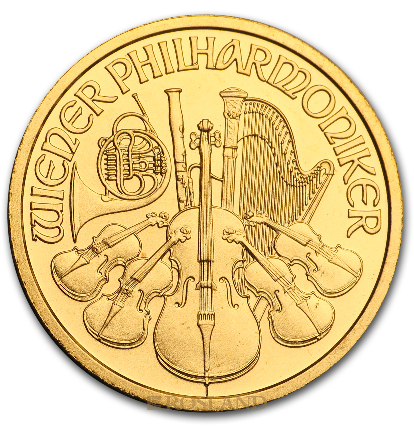 The Vienna Philharmonic (German: Wiener Philharmoniker), often shortened to Philharmonic, is a bullion coin of gold, silver, or platinum produced by the Austrian Mint (Münze Österreich).The coin is named for the Vienna Philharmonic orchestra, which inspired the design of both sides. It was introduced in 1989 as a one-troy ounce (ozt), gold coin with a face value of 2,000 Austrian schillings.